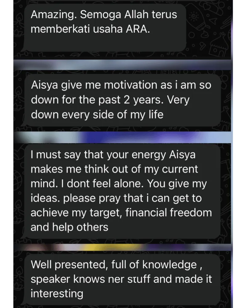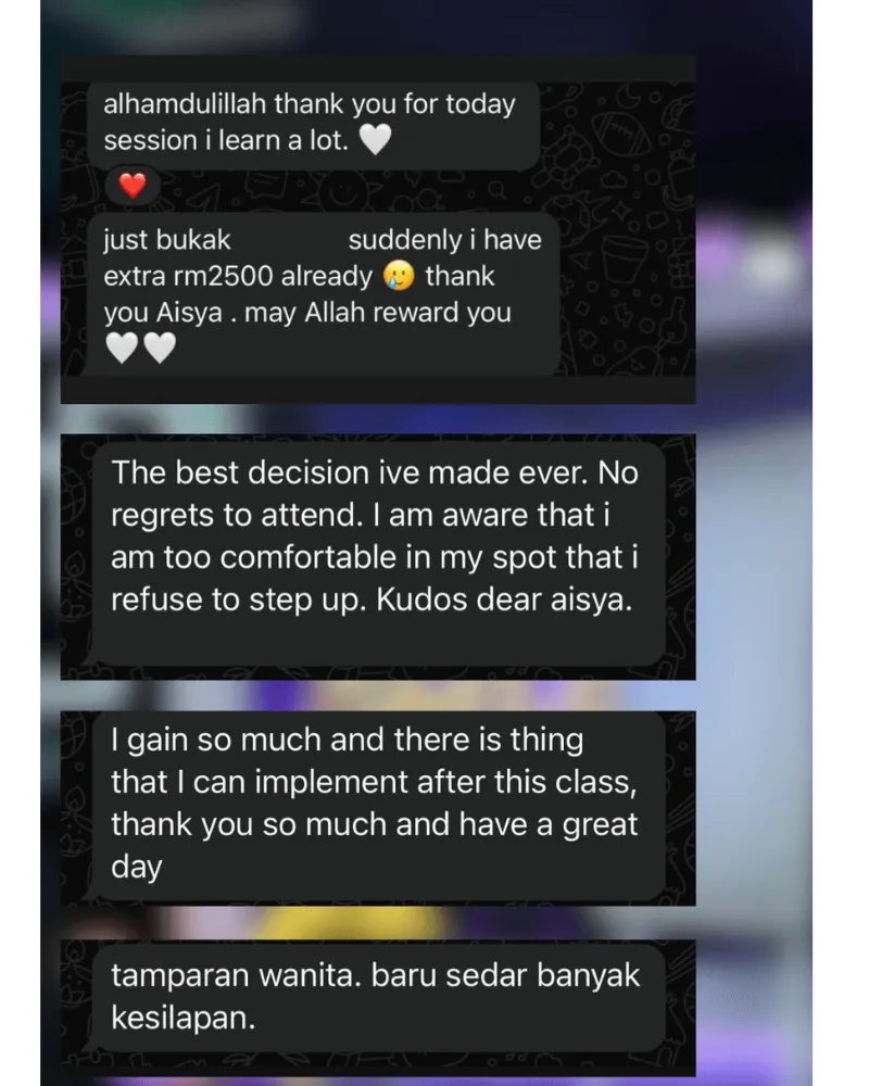 - We (Women & Wealth by Aisya Rahman Advisory Sdn. Bhd.) collect your name, phone number, and email to contact you regarding our programmes, events, and related marketing updates.